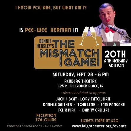 Dennis Hensley’s The MisMatch Game is a staged comedy game show benefit I’ve been emceeing and producing at the LA LGBT Center since 2004. To date, raised over $200,000 for the Center’s Homeless Youth Program & had a ton o’ fun.