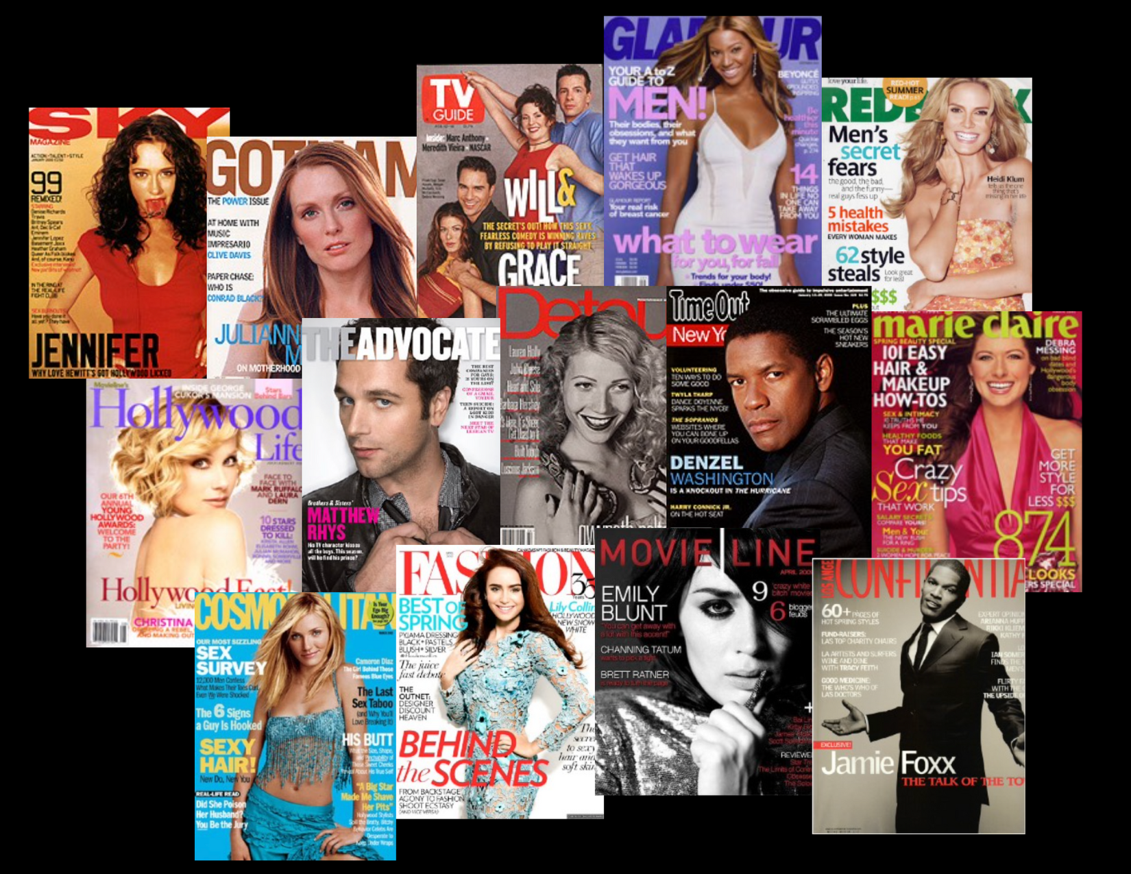 Since selling that first story, I’ve written for Hollywood Life, In Style, Us Weekly, TV Guide, Total Film, Esquire, Cosmopolitan, Glamour, Gotham, Hampton's, Out, The Advocate, The Face and many more.